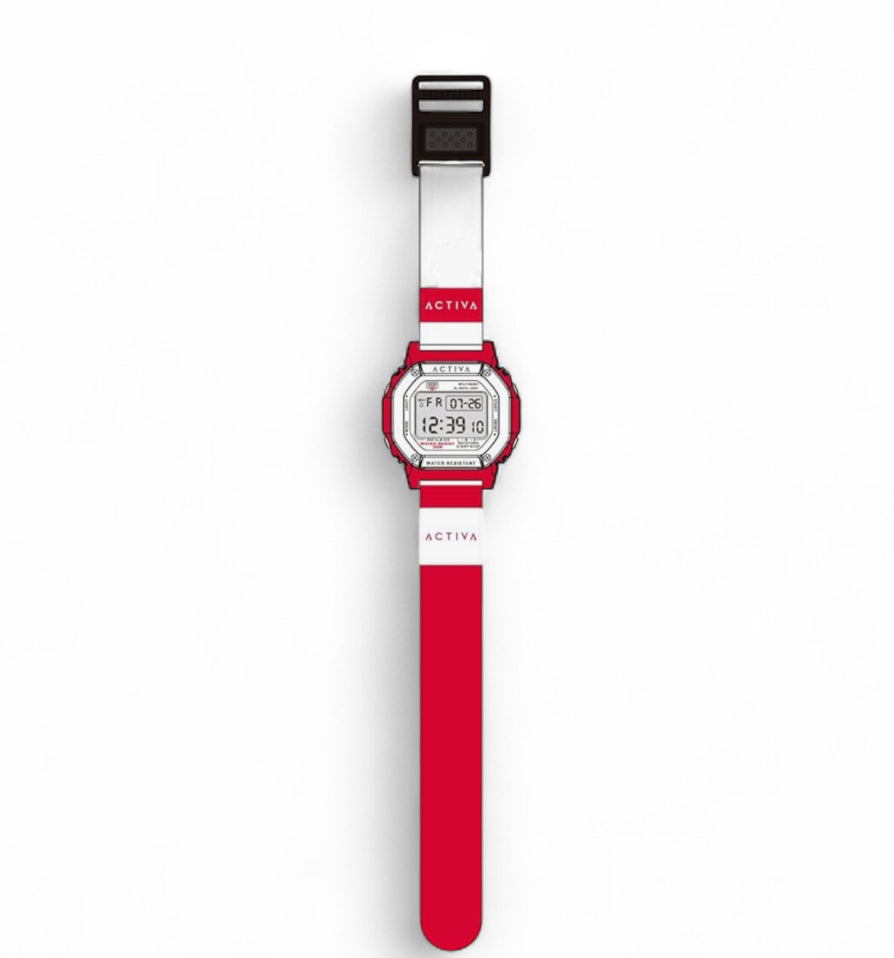 Description: Red | White | Digital | Unisex | resist water for up to 30 m | single time zone | 1/1-second stopwatch | Single Alarm | LED backlight Afterglow | dial protected by a highly resistant Crystal.