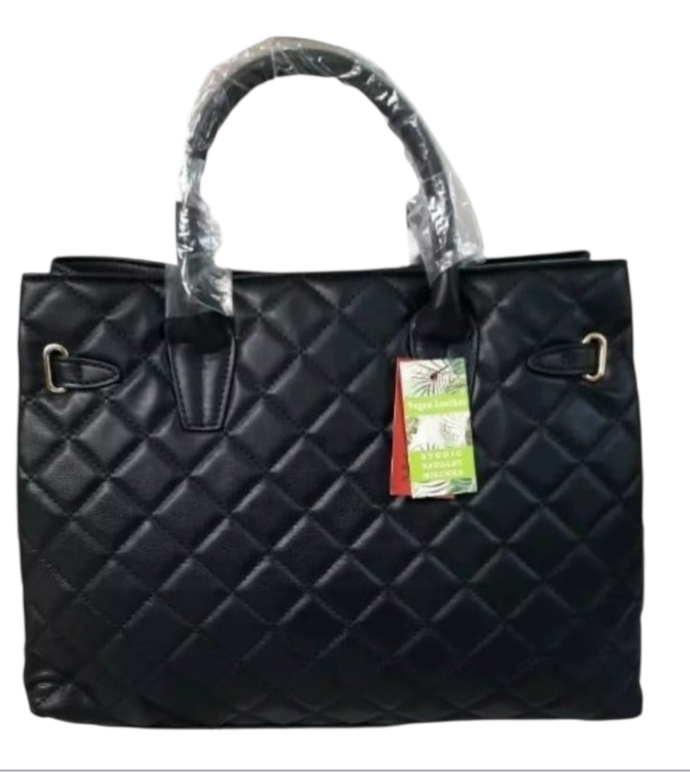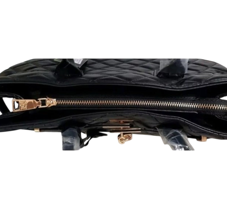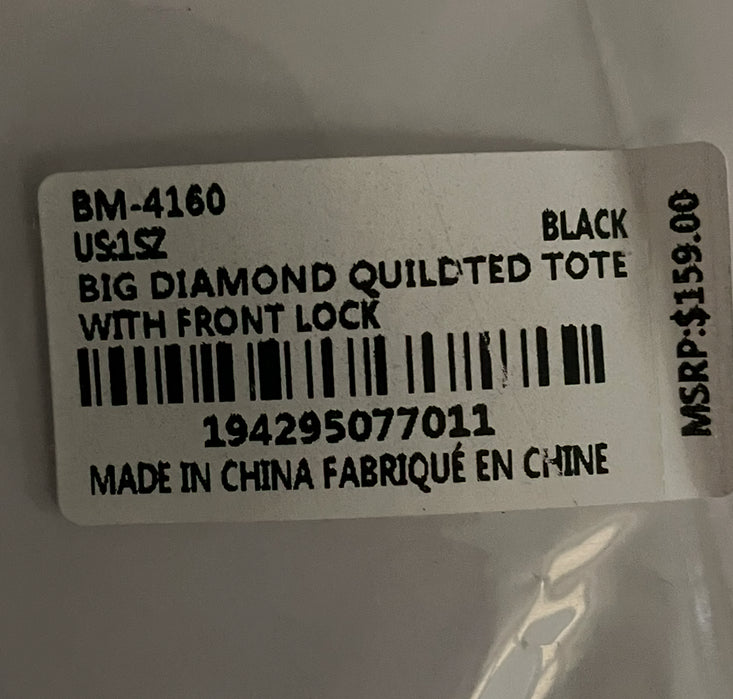 Title: Badgley Mischka Big Quilted Black Diamond Pattern Tote Bag With Front Lock