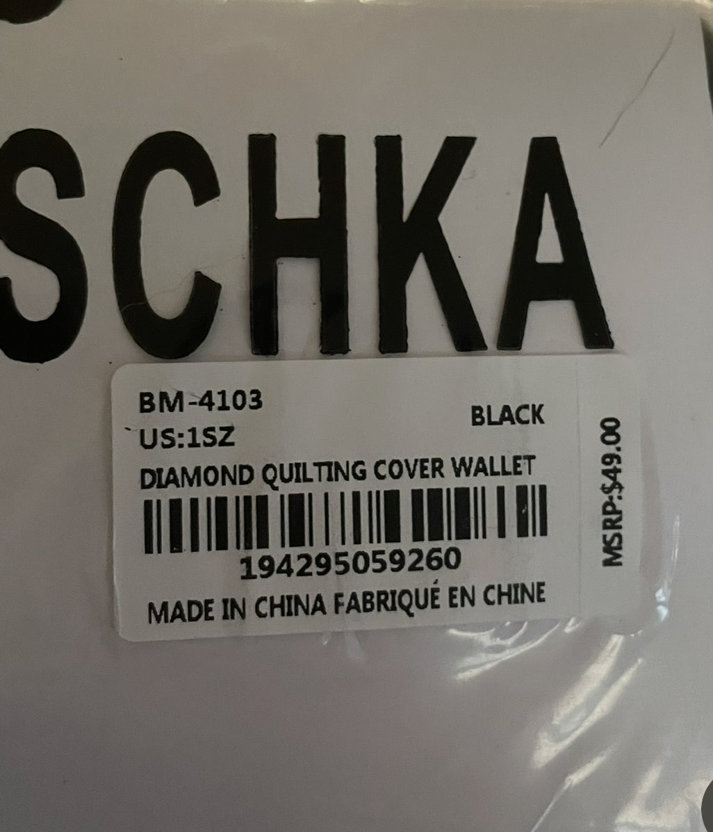 Title: Badgley Mischka Black Vegan Leather Diamond Quilted Studio Card Holder Wallet