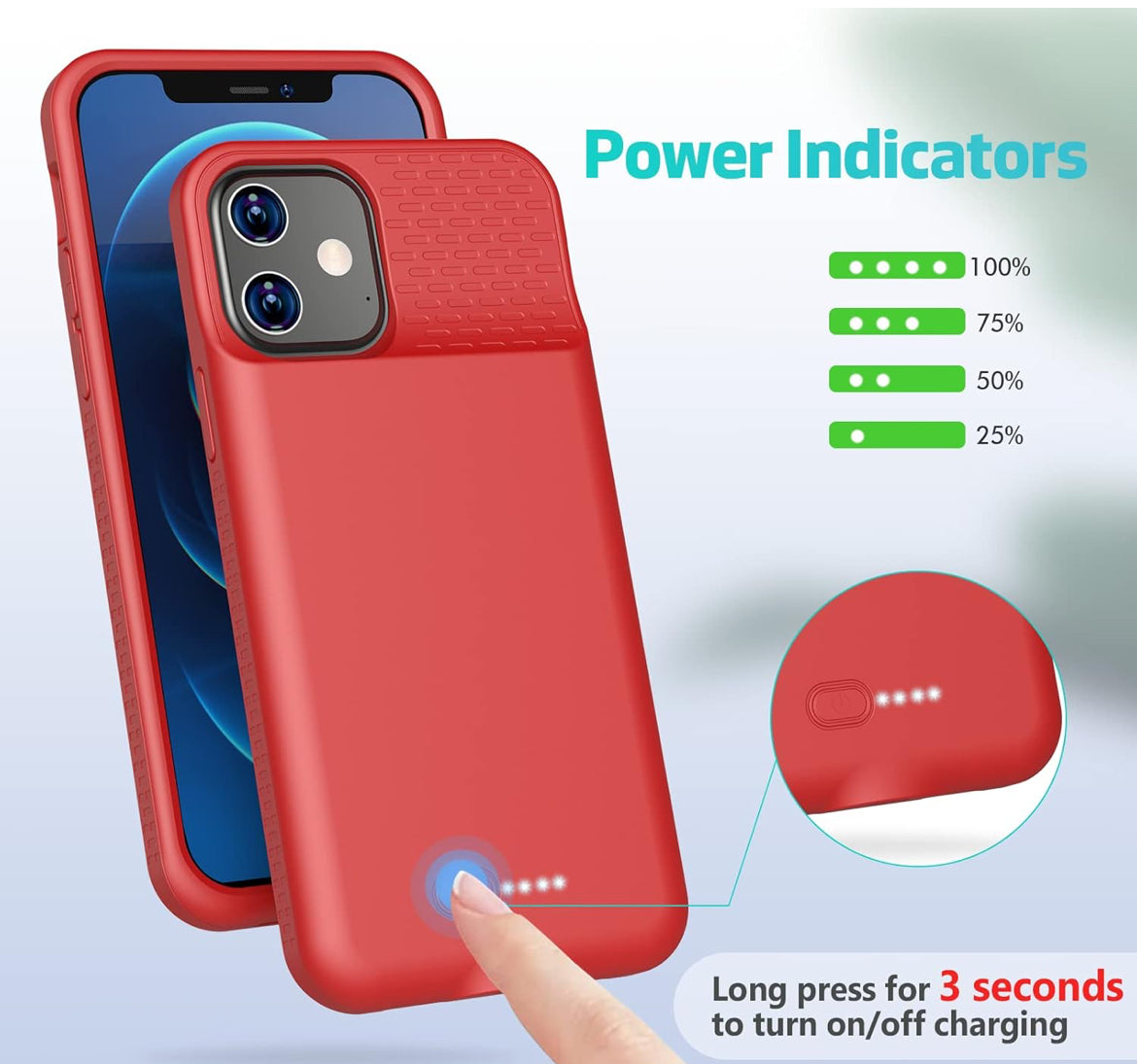 Battery Case for iPhone 12/12 Pro, Real 7000mAh Rechargeable Ultra-Slim Charging Case with 1x Screen Protector & 1x Cable for iPhone 12/12 Pro Extended Battery Pack(6.1 inch) Red