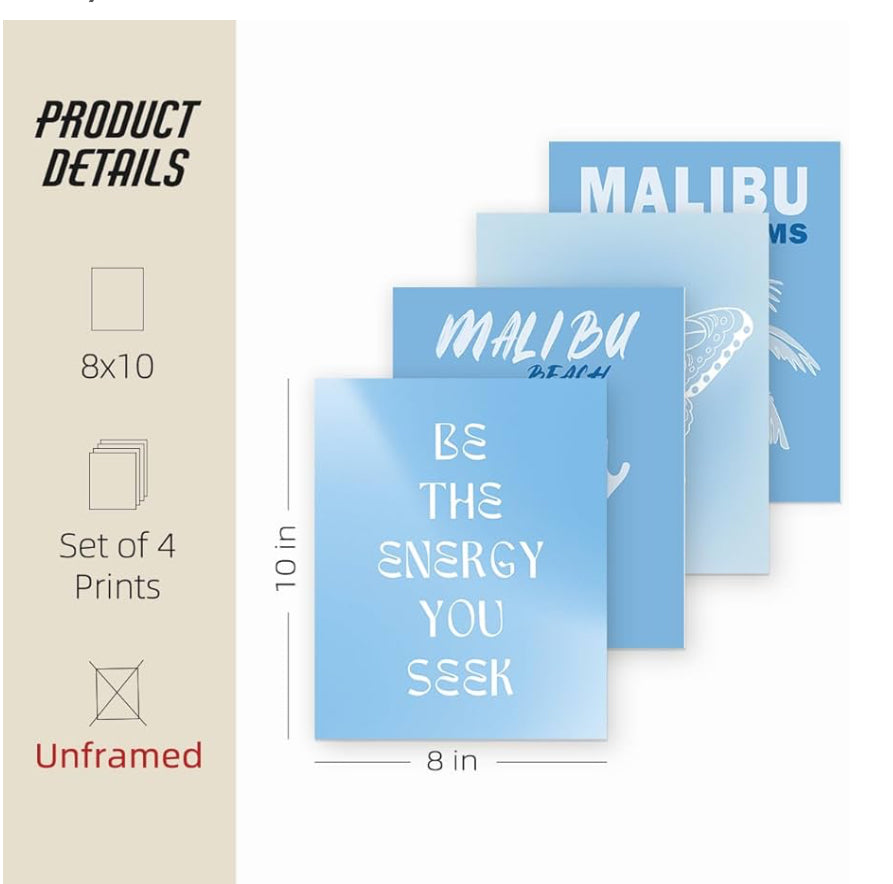 Description: coastal blue/four prints/ coastal aesthetic/ unframed/ wall prints