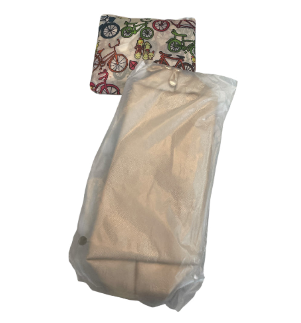 Title: Colorful Bicycle Print Bag with Light Khaki Cosmetic Bag