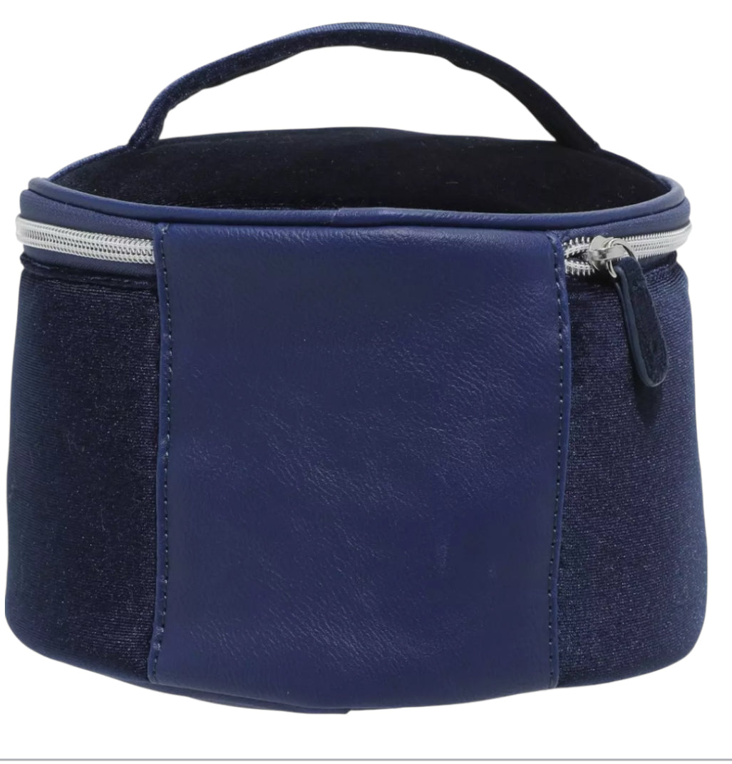 Description: cosmetic | makeup bag | inspired by Disney's Beauty and the Beast and features an appliquéd portrait of the Beast on the front | Top carrying handle | Navy blue velvet | faux leather |faux fur details | Zipper Closure