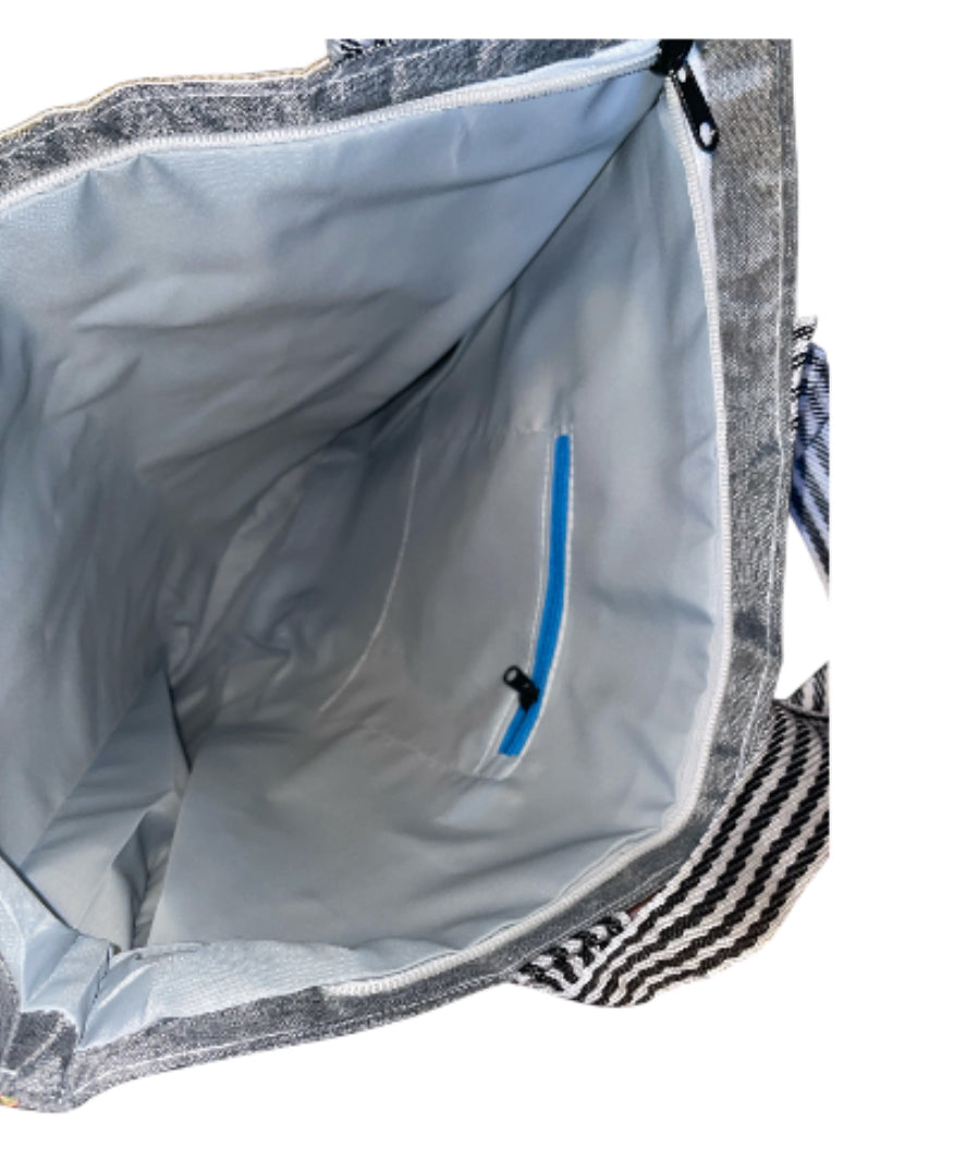 Description: color | thick | canvas | tote | inner lining in gray | zipper pocket on the in side | zipper closure
