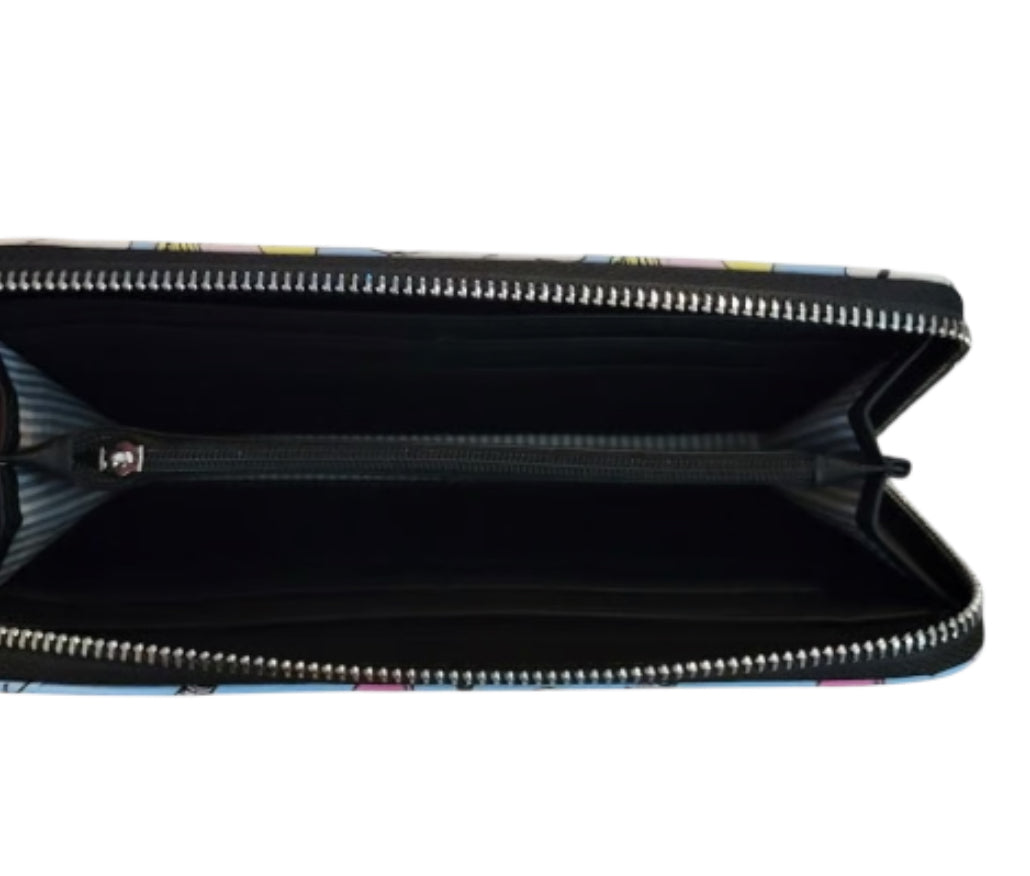 Description: faux leather | allover print inspired by Dr. Seuss' classic book | zip-around | 8 credit card pockets | 2 cash | 2 check | middle zip coin slot.