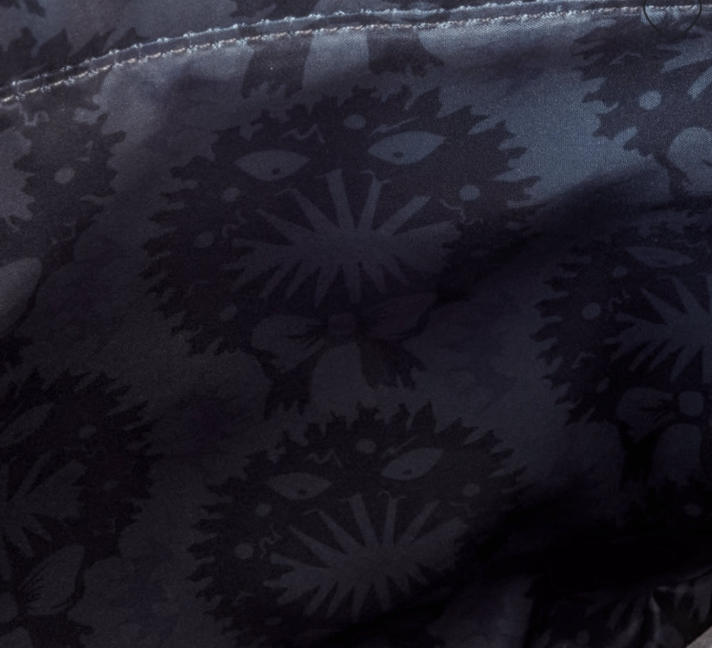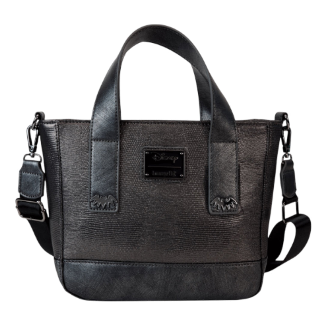 Description: A Loungefly exclusive! | Vegan leather (polyurethane) | Top handle | Adjustable (detachable) shoulder strap | Zippered closure | Gunmetal hardware | Molded metal rivet | textured vegan leather | printed details | Coordinating inside lining