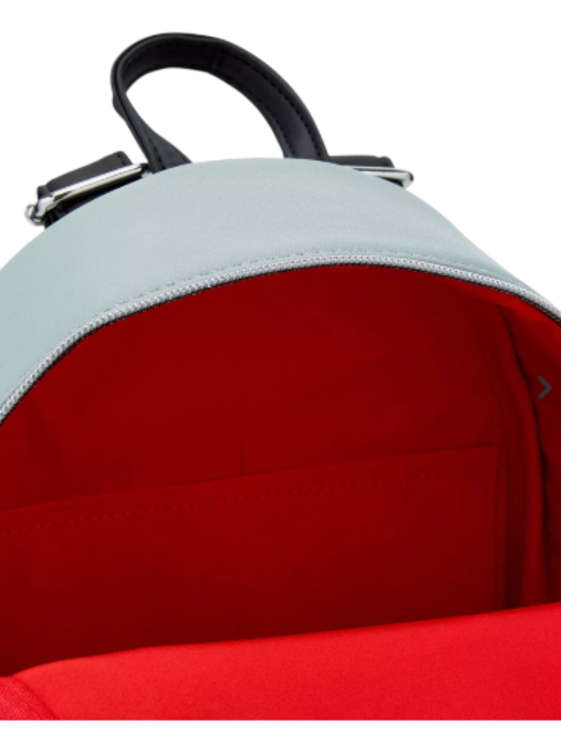 Description: Brew up some Worm's Wart Soup with Sally! This The Nightmare Before Christmas mini backpack depicts Sally posing behind a cauldron, surrounded by red roses and potion ingredients with subtle glitter detailing. adjustable straps | a front zipper pocket | interior drop pocket