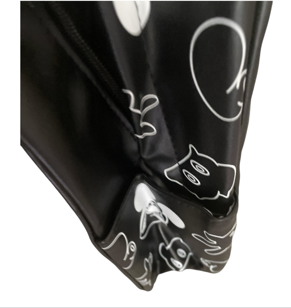 Description: faux leather/ mini style/ front pocket with zipper closure/ main pocket zipper closure/ open side pockets perfect for a water bottle/ inner open pocket