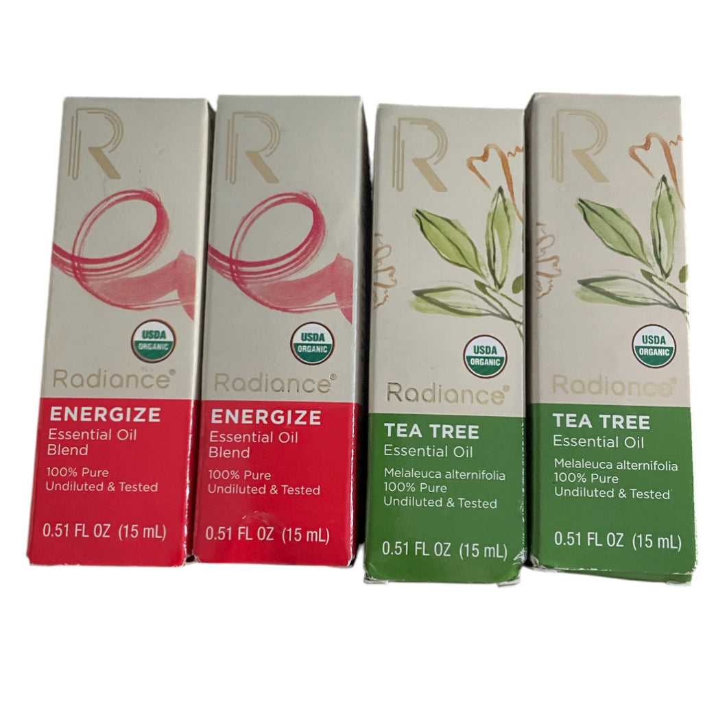 Description: essential oil diffuser | 7 light colors | auto switch-off function | powered by a USB cable | disperse essential oil aromas | compatible with various essential oils | offers adjustable mist settings for customization | comes with 2 Radiance Energize essential oils | 2 Radiance Tea Tree essential oils