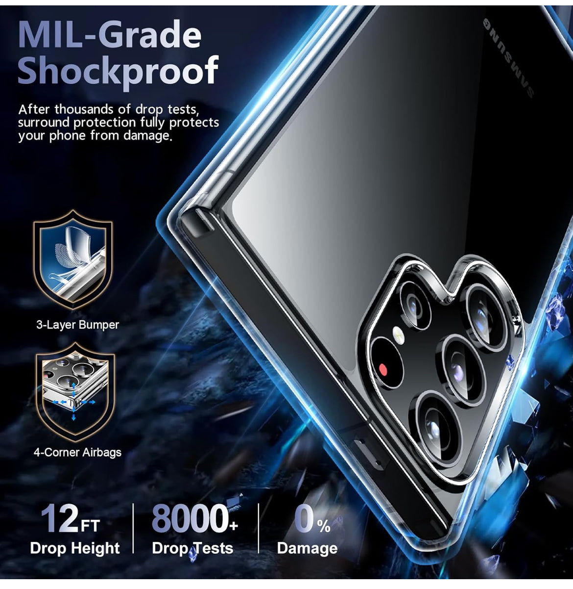 Military-Grade Drop Protection/Red2Fire screen protector made from high quality 9H Tempered Glass protect your phone screen from accidental drops and scratches/ 0.33mm tempered glass ultra-thin/comfortable/ maintains 99.99% response sensitivity/ making your fingertips feel like dancing on the screen/Hydrophobic and oleo-phobic coating make it anti-fingerprint and dirt- proof/ Special designed HD Tempered Glass camera lens protector for S24 Ultra/ 2.5 mm lips over camera effectively protect against accidentally drops and scratches/All cutouts of charging port, lens, and side buttons have been measured and align perfectly to fit your Phone to stop any dust from entering and scratching the body/ scratch-resistant/anti-fingerprint resistant/non slippery bumper provides excellent grip