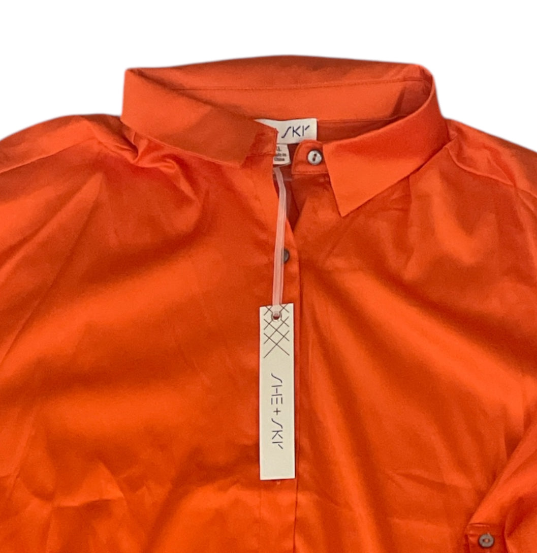 She + Sky Orange Button Down Blouse (X-Large)