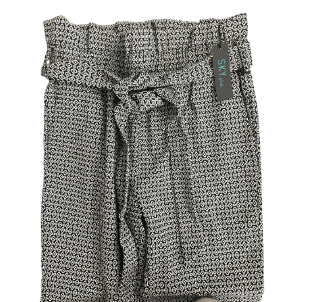 Description: high rise | Ruffle waist | pull on | belt loops | matching tie belt | side pockets | 16-18” waist | 14” rise | 27” inseam