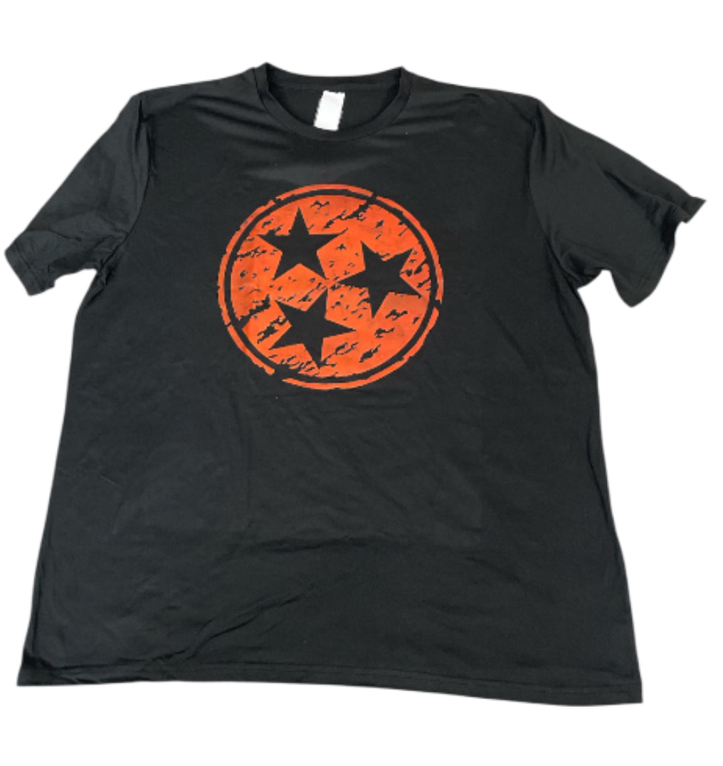 Tennessee Distressed Orange Tri Star Black Tee Shirt (3x)