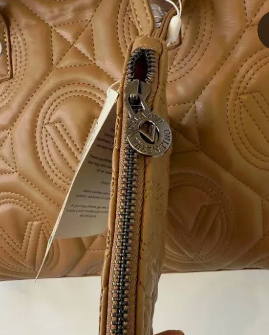 Description: Valentino Orlandi/ Quilted Tote Bag/ Adjustable and detachable straps/ Lined/ Zipped pocket/ Computer pocket/ Zip closure/ Matching wallet/ amazing outter detailing