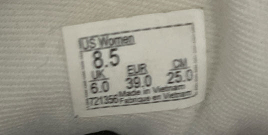 Description: Printed canvas upper/ Lace-up closure/ Round toe/ Padded collar/ Fabric lining/ Cushioned footbed/ Vulcanized midsole/ rubber waffle sole/ soles look great for being pre-owned/ will come with new laces.