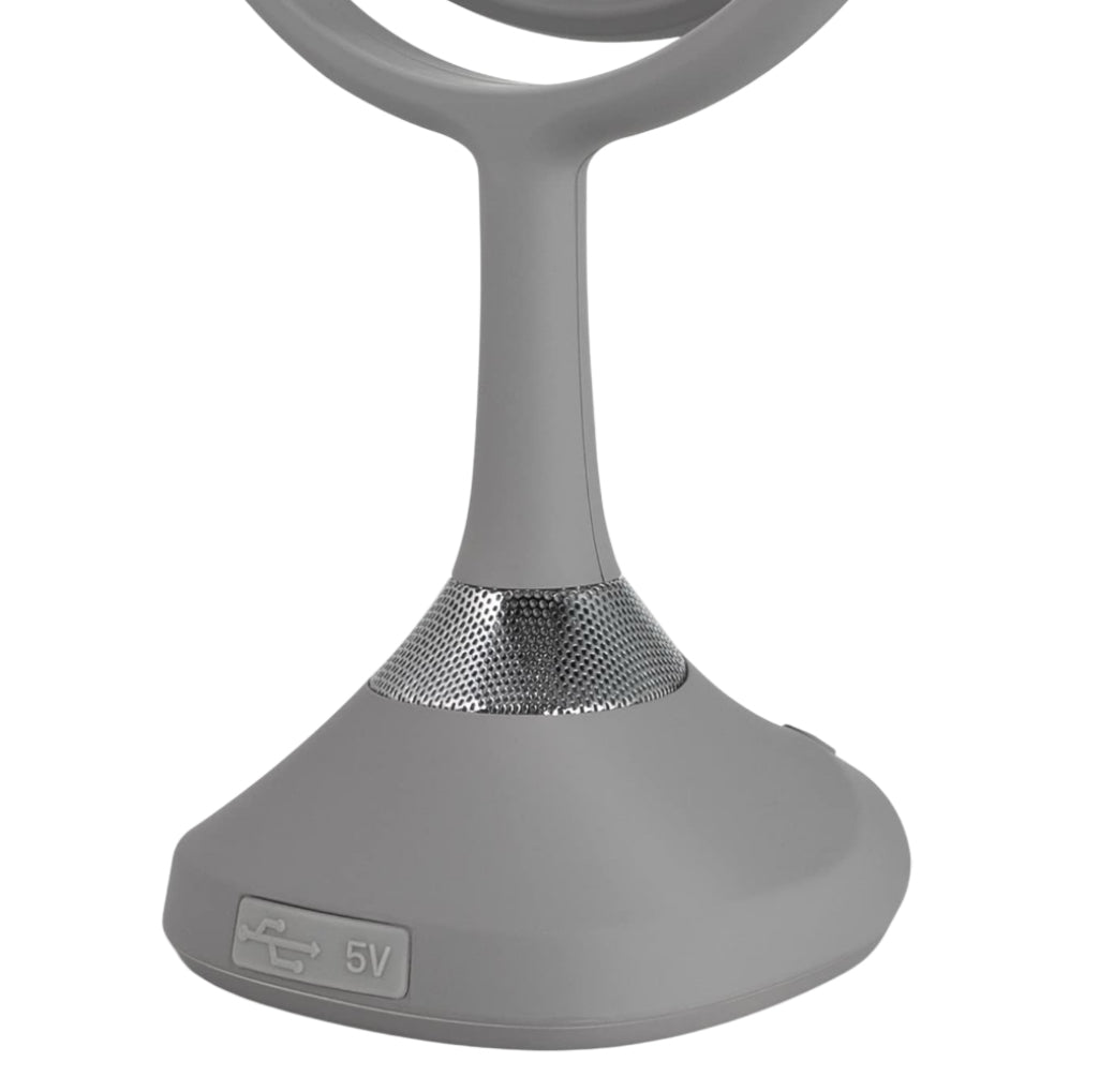 Description: Zadro/ 5"/Round/ LED/ Ring Light/ Countertop/ Rotating Dual Mirror/ Built-in Bluetooth Speaker/ USB Device Charging Port/ 5 & 1 Time Magnification (5x/1X, Gray)