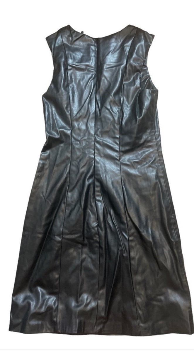 Description: Zara/ Black/ Faux Leather/Sleeveless/ Jumper/ Zip Up back/ Dress/ bust 26”/ waist 25”/ hips 31”/ length 32”