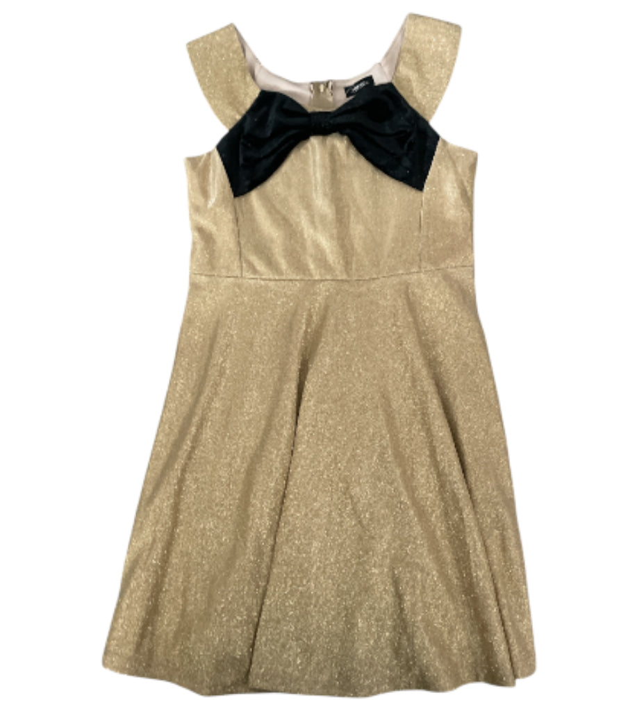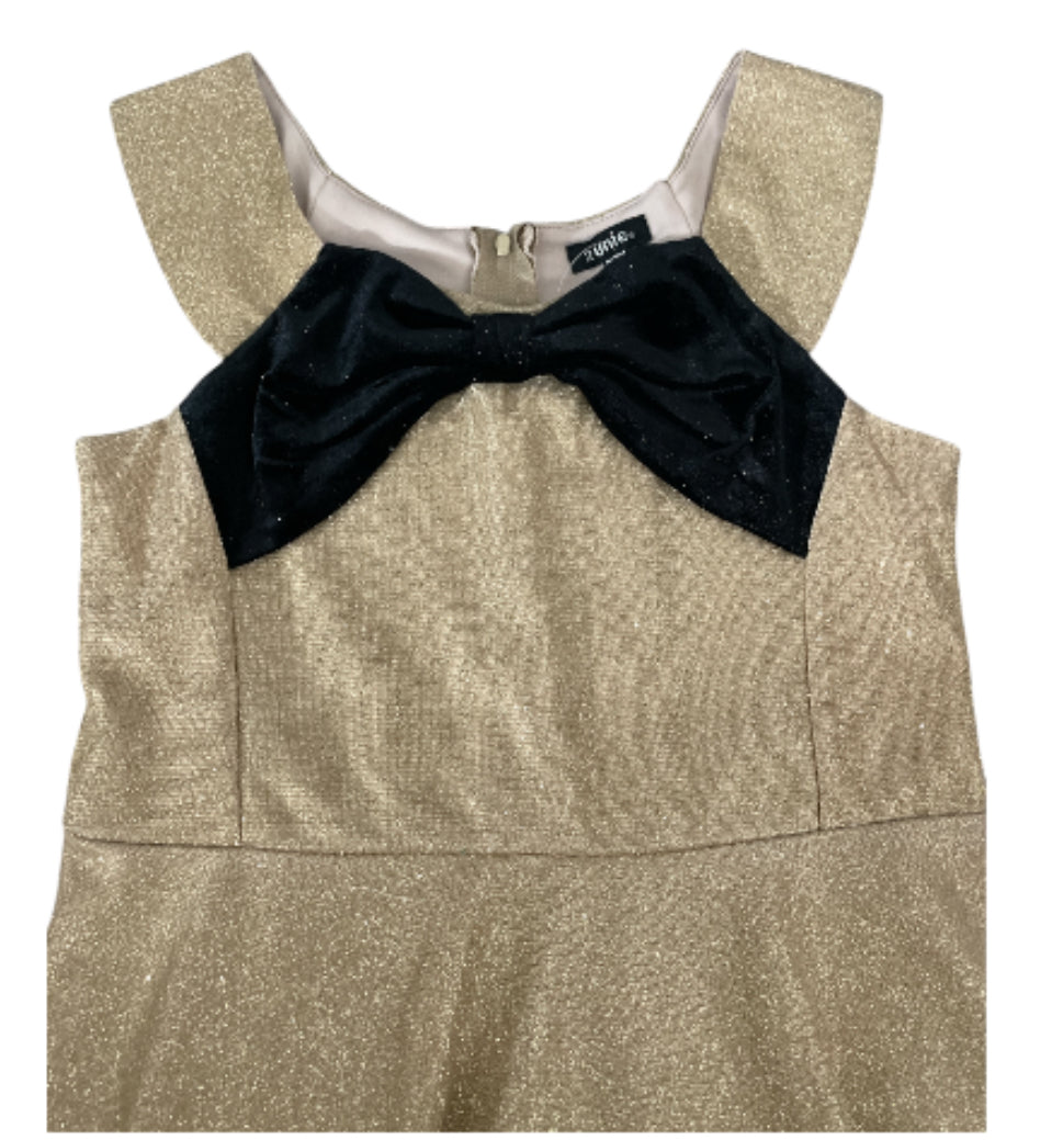 Title: Zunie Gold Sparkle and Black Velvet Bow Dress